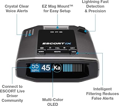 Escort's new ix has faster/greater processing power, increased memory, integrated bluetooth though it's smaller in size, the ix still packs a long list of capabilities, with the only feature missing from its the distance the escort ix can detect threats is very impressive. Improved ka range good x,k detection improvements still be made on k band detection, escort ix easy to use comes with helpful owners manual. Live detection meets escort range. The escort ix is one of the most technologically advanced radar detectors you can get on the market. Intelligent long range radar laser detector.