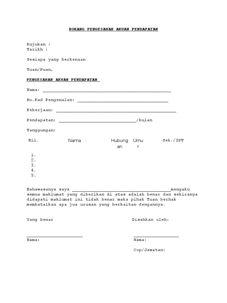 Borang yang telah diisi dengan lengkap perlu dicetak untuk tujuan pengesahan di sekolah. Download borang pengesahan pendapatan download document. Borang pengesahan pendapatan ( penjaga / pasangan penjaga) nama pelajar : Pengakuan suatu jumlah rupiah dalam akuntansi pada umumnya didasarkan pada konsep objektivitas yaitu bahwa jumlah rupiah tersebut dapat diukur secara cukup pasti dan ada. (pemohon dan pasangan yang tidak mempunyai slip gaji / penyata pendapatan).