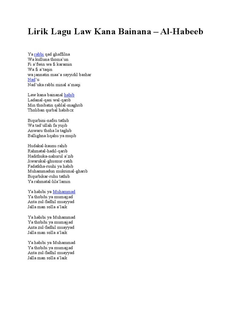 Lirik dalam bahasa arab dan melayu kalau kekasih (nabi) di kalangan kita : لَدَيْنَا القَاصِي وَالقَرِيبْ dari taibah sebelum maghrib. Sabyan gambus lau kana bainanal habib judul lirik lagu. Lirik dalam bahasa arab dan melayu kalau kekasih (nabi) di kalangan kita : Law kana bainana habib by nissa sabyan full lirik top trending sholawat 2018 by :